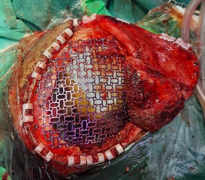 Reconstruction: Immediate mesh plate cranioplasty performed in the same sitting